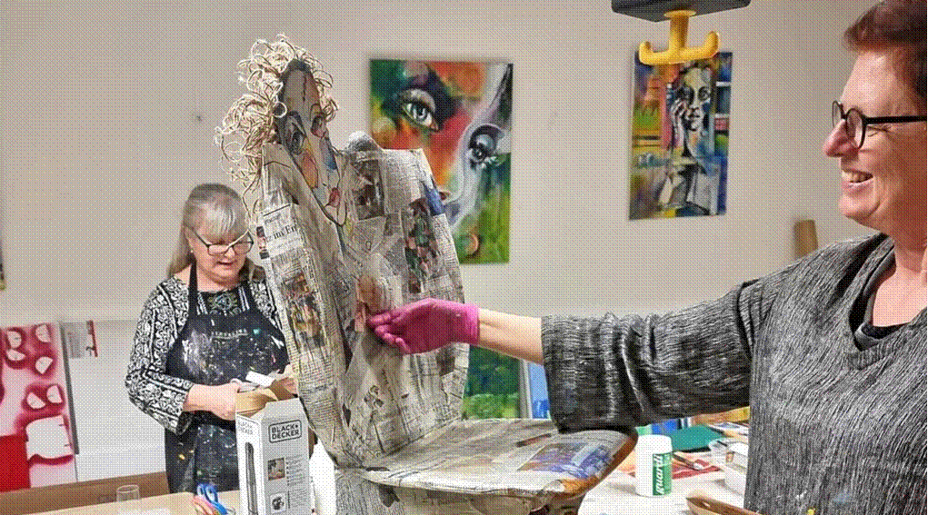 Regina Meier (l.) und Kerstin Svensson gestalten künstlerisch eien "Märchenstuhl" passend zum Thema dieses Sommers.